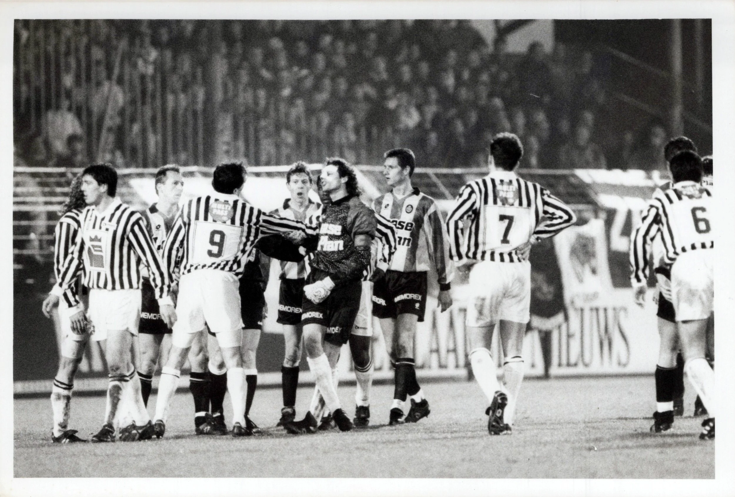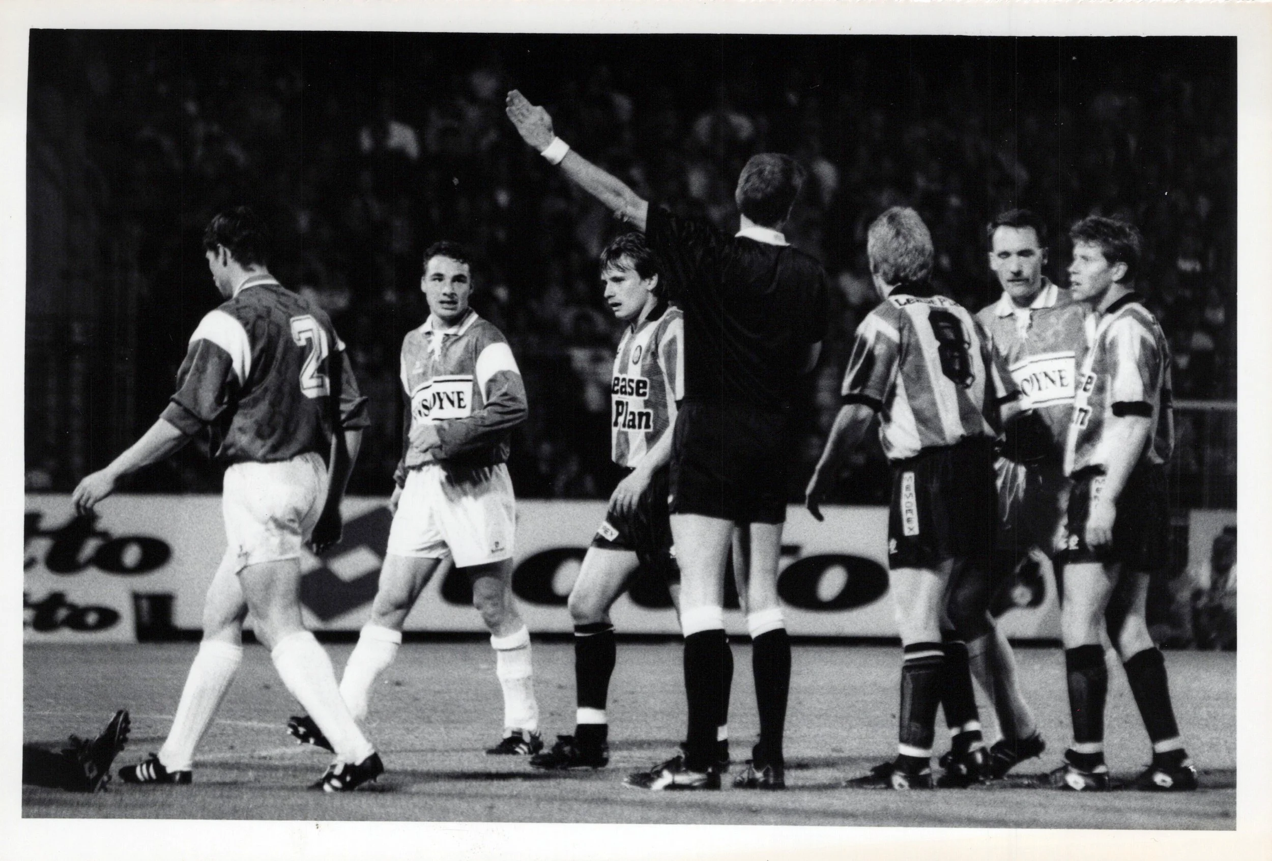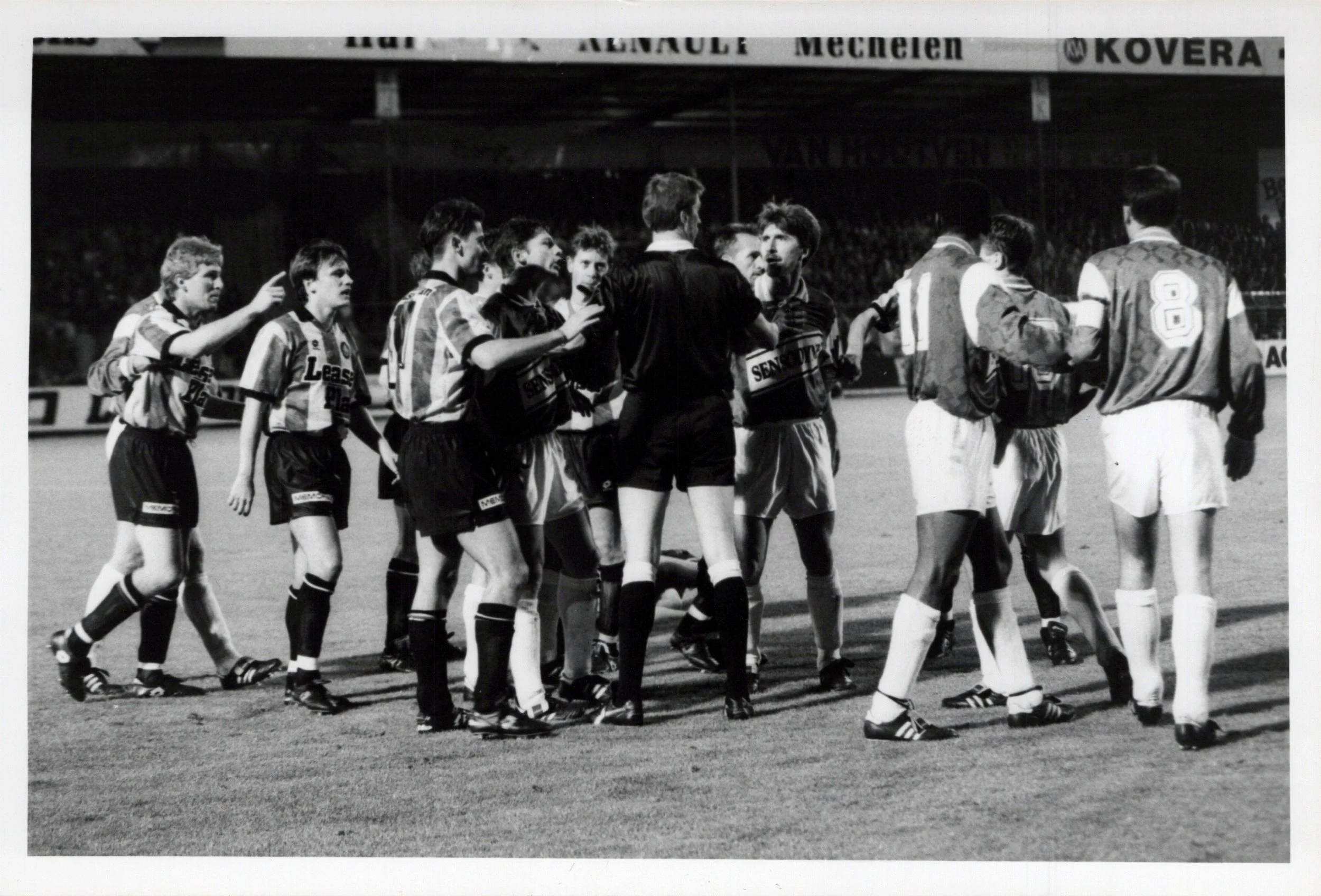 Dit thuisshirt is van het merk Lotto en uitgevoerd in een geel-rood gestreept ontwerp. Het shirt heeft een rode V-hals met een zwarte kraag, en zwarte manchetten. Op de borst staat een opgedrukt clubembleem met een zwarte achtergrond.